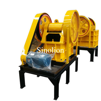 The jaw crusher is mainly composed of a frame, an eccentric shaft, a large belt pulley, a flywheel, a side guard, a toggle, a toggle back seat, a clearance screw, a return spring, a fixed jaw and a movable jaw. The crushing method of jaw crusher is curved extrusion type. When working, the motor drives the belt and pulley to move the movable jaw up and down through the eccentric shaft. When the movable jaw rises, the angle between the toggle plate and the movable jaw becomes larger, thereby pushing the movable jaw plate closer to the fixed jaw plate, and the material passes through the two jaws. The squeezing, rubbing, and grinding between the plates realize multiple crushing; when the movable jaw moves down, the angle between the toggle plate and the movable jaw becomes smaller, and the movable jaw leaves the fixed jaw under the action of the pull rod and spring, and the material has been crushed under the action of gravity, it can be discharged freely through the discharge port at the lower part of the jaw cavity. With the continuous rotation of the motor, the movable jaw is periodically crushed and discharged to realize mass production.